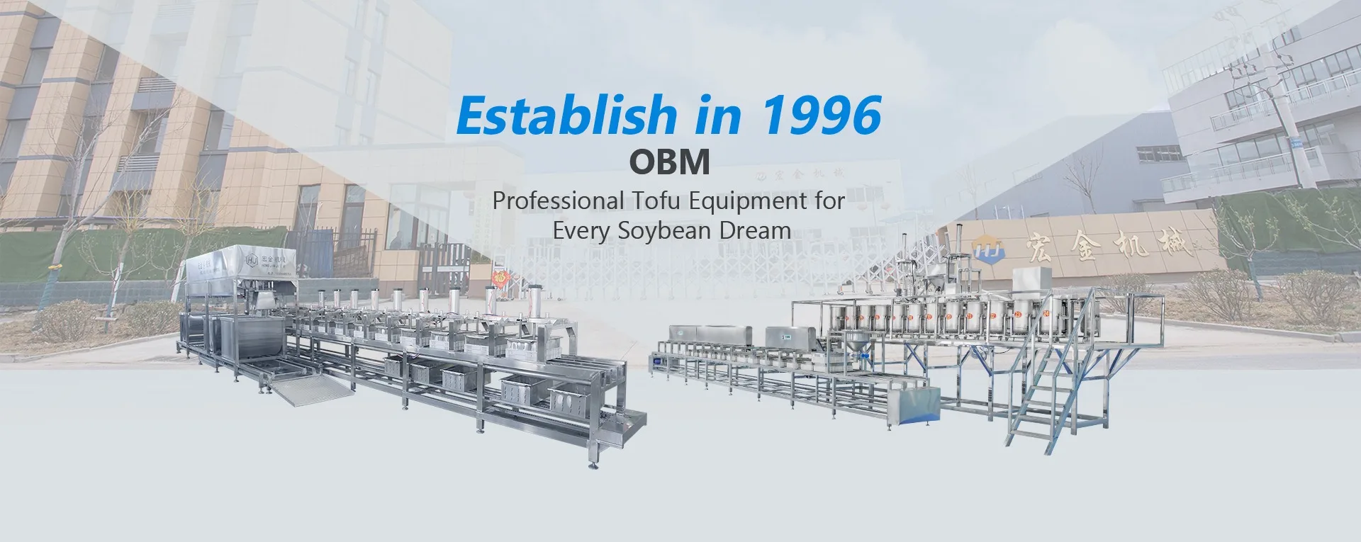 Shandong Hongjin Machinery Co., Ltd., established in 1996 and located in Jinan, Shandong Province, is a leading manufacturer of advanced and innovative soybean product machinery. Our product line includes soy milk machines, tofu machines, tofu skin machines, dried tofu machines, yuba (tofu stick) machines, bean sprout machines, and more. We have exported our equipment to over 50 countries, including the USA, Russia, India, Indonesia, Vietnam, Mexico, the Philippines, various African nations, and others. Our factory covers an area of more than 20,000 square meters, employs over 200 staff, and owns dozens of national patents. We supply equipment to large, medium, and small-scale soy product manufacturers. At Hongjin, we provide customers with full technical support, including production planning, layout design, equipment manufacturing, training, installation, and commissioning.